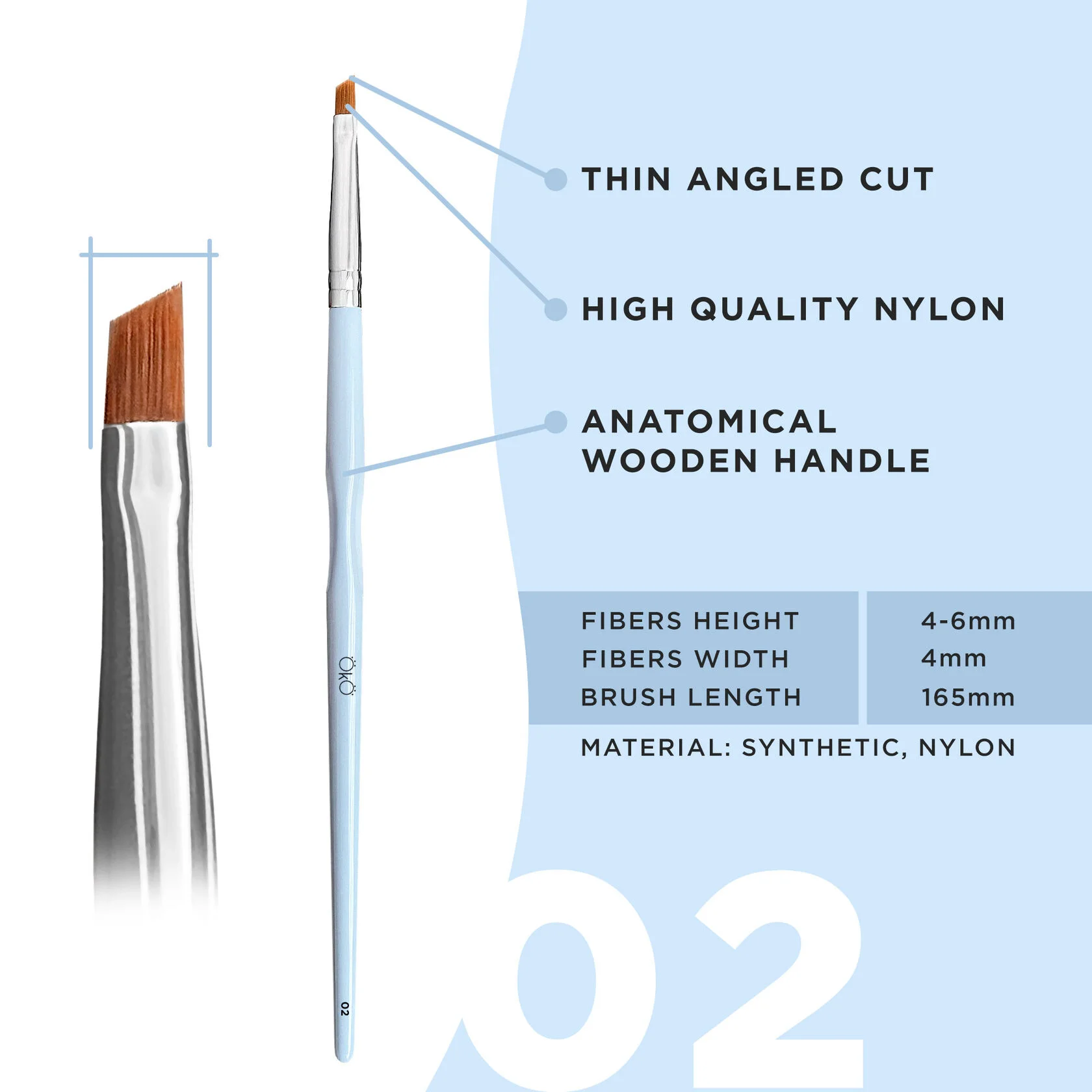 O Mini Pincel Angulado nº 2 é perfeito para desenhar linhas ultrafinas e criar camadas de cor. O tamanho e o formato do pincel permitem alcançar as áreas mais difíceis das sobrancelhas sem tocar nos pelos.