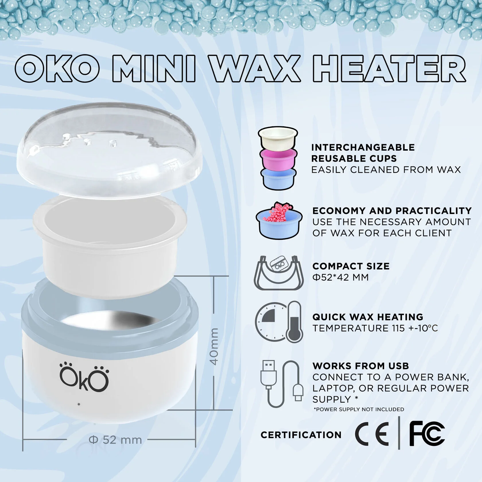 O aquecedor de cera OKO é realmente minúsculo: o volume do recipiente para derreter cera é de apenas 8 g, e os 3 recipientes de silicone substituíveis incluídos permitem trabalhar com ceras de diferentes tipos e texturas. Uma pequena quantidade de cera aquece muito mais rápido, em apenas 5 a 6 minutos a cera está completamente pronta para uso.