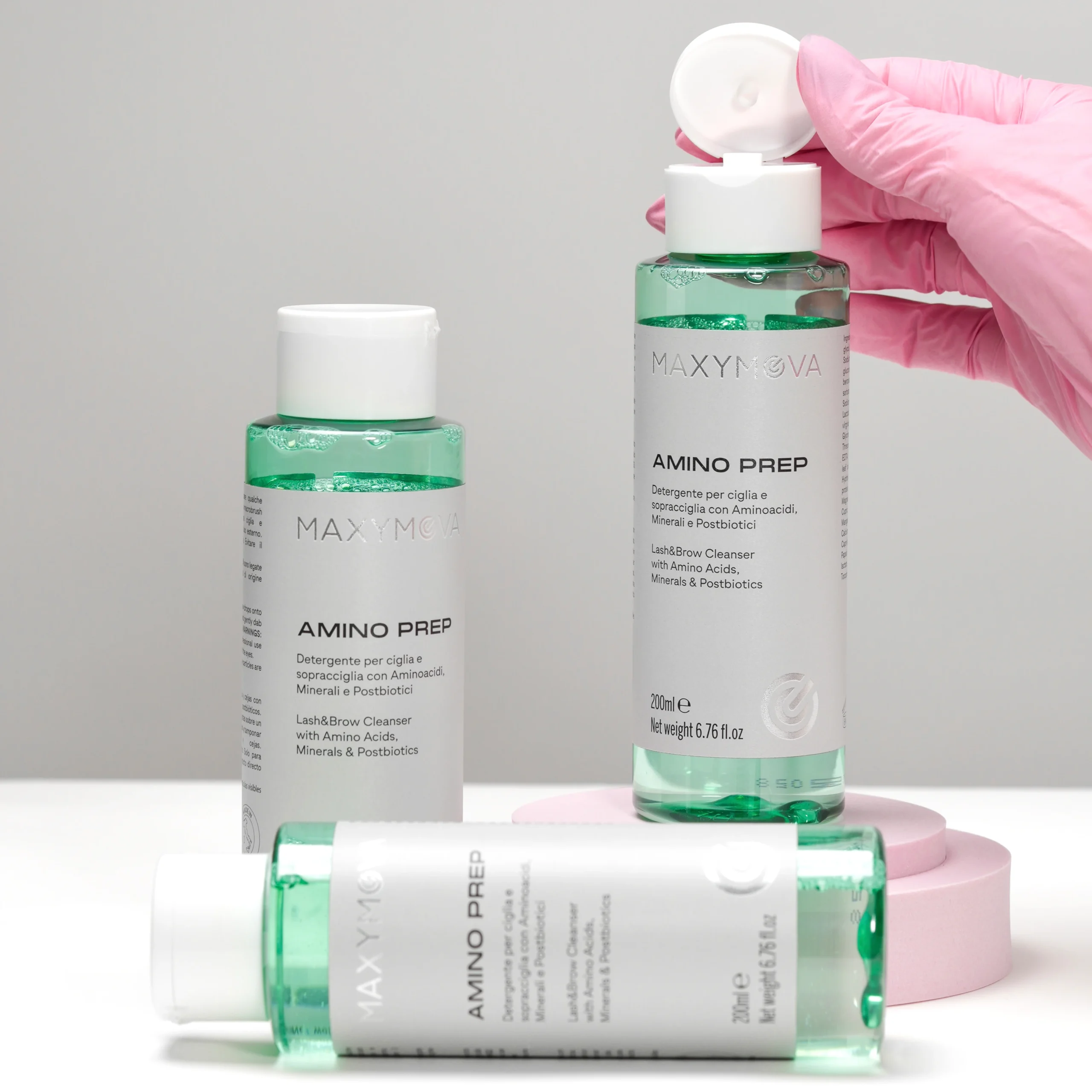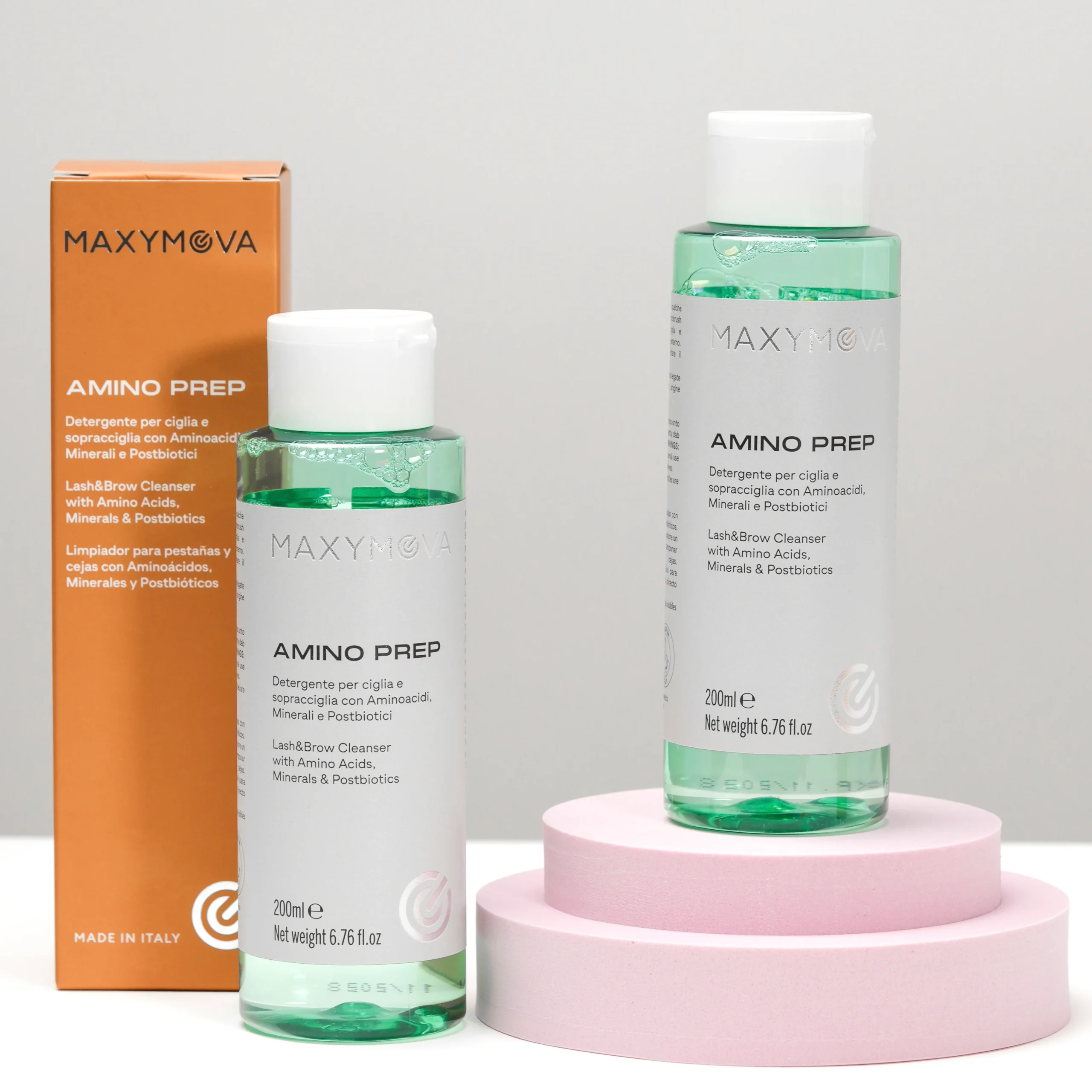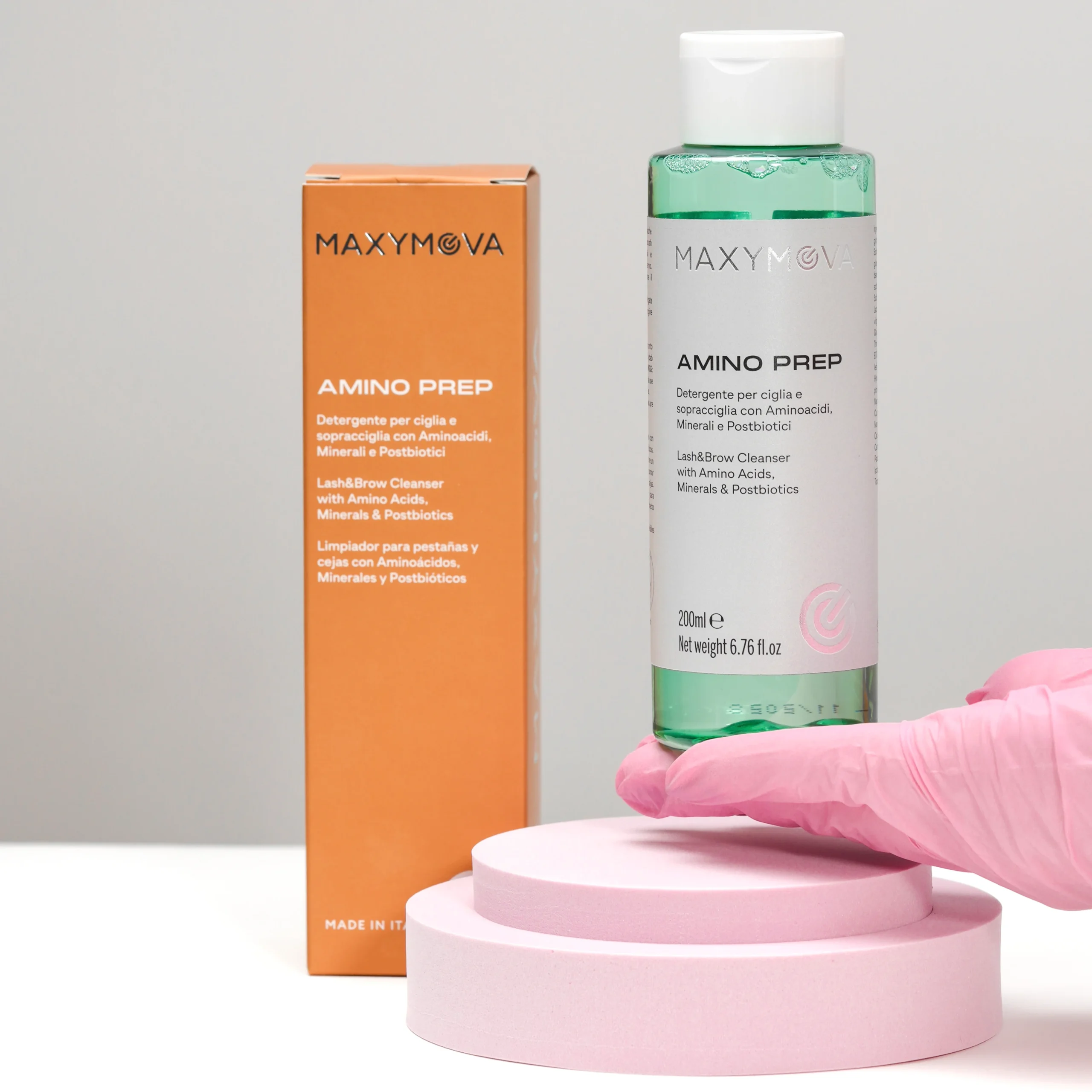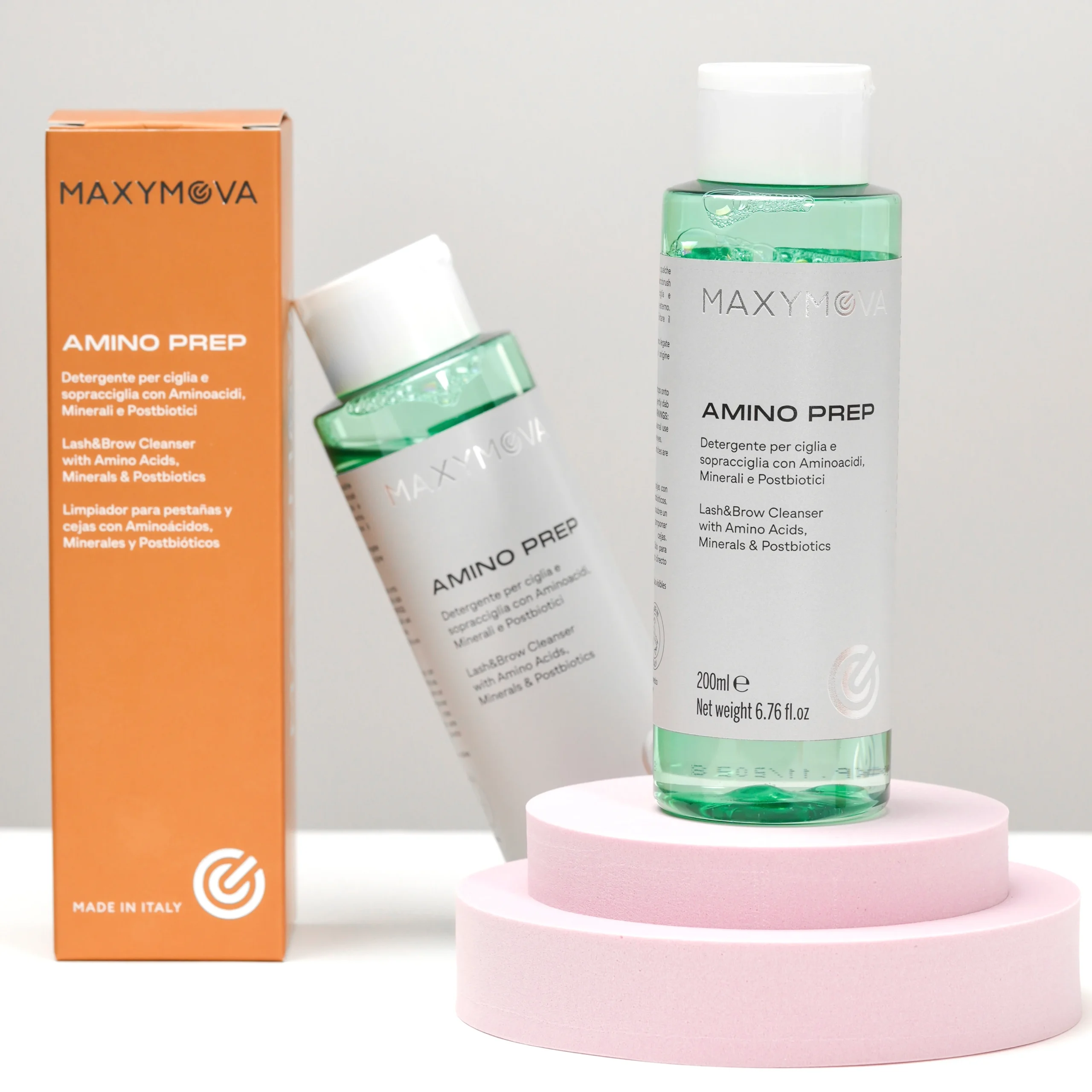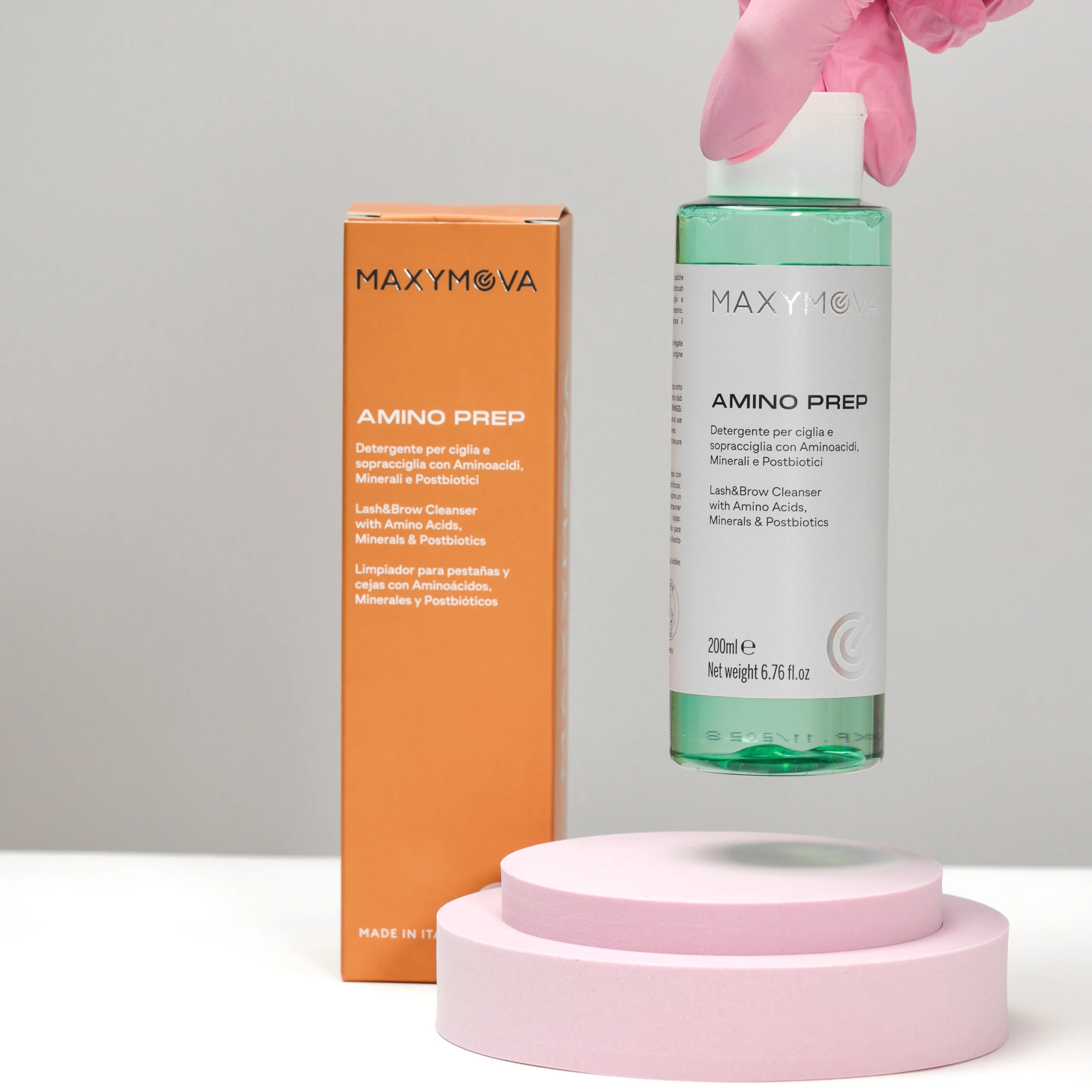 AMINO PREP é uma solução profissional de pré-tratamento projetado para limpar e preparar suavemente pestanas e sobrancelhas antes dos procedimentos de Lash Lifting e Brow Lamination ou Design de Sobrancelha.